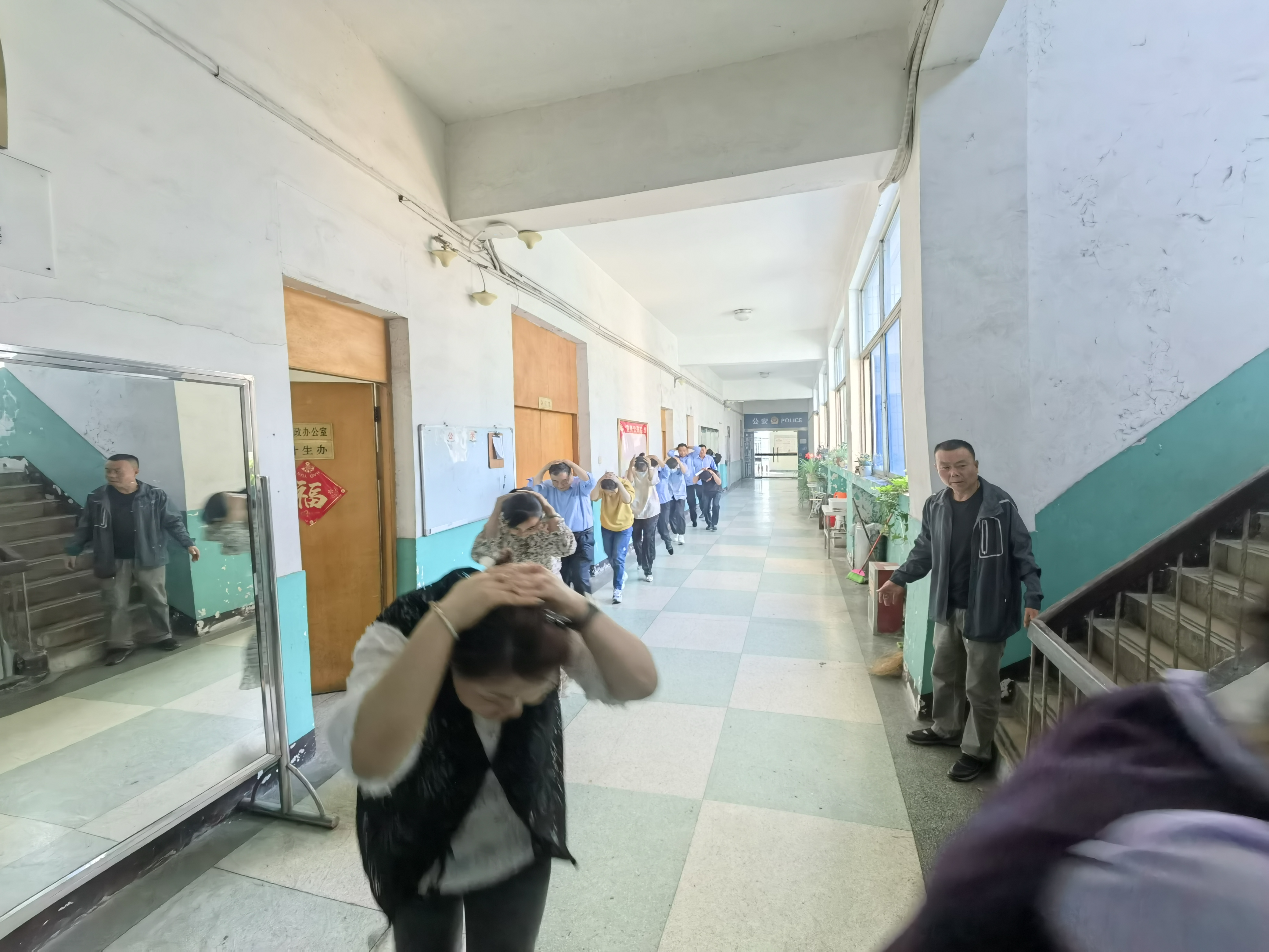 演練分別模擬突發(fā)火災(zāi)和地震兩種災(zāi)害方式,宣教引導(dǎo)職員在遇到突發(fā)災(zāi)害時(shí),用正確、迅速、有效的方法進(jìn)行疏散避險(xiǎn):模擬火災(zāi)演練中引導(dǎo)職工手捂口鼻、彎腰前行,按照安全指示有序經(jīng)安全通道緊急逃生;模擬地震演練中引導(dǎo)職工手護(hù)頭部、快速有序疏散到安全區(qū)域。