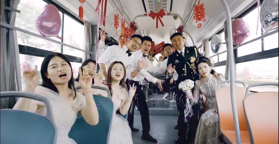 “那就歡歡喜喜辦一場簡約時(shí)尚的婚禮吧!”——新時(shí)代新風(fēng)尚新婚俗,5月11日,公交定制時(shí)尚囍禮“專線”成為清晨一道靚麗的風(fēng)景線。年輕的新郎新娘在親朋好友的陪伴和見證下一同乘坐“幸福專列”,開啟專屬幸福旅程。