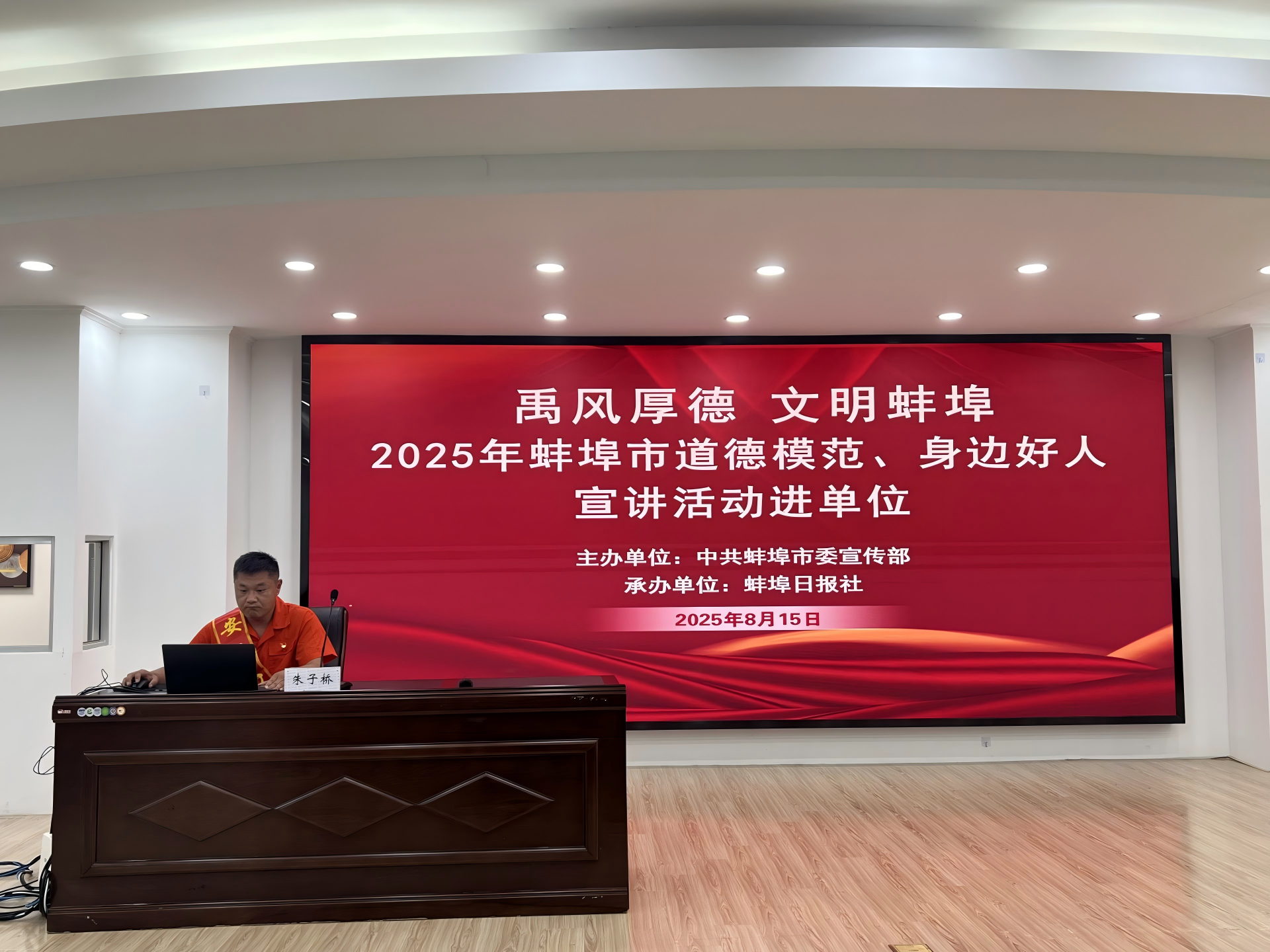 8月15日下午,2025年蚌埠市道德模范、身邊好人宣講活動走進蚌埠日報社,特別邀請了“安徽好人”朱子橋,他以“匠心筑夢 一起向未來”為主題,為在場的新聞工作者帶來了一場感人至深的宣講。