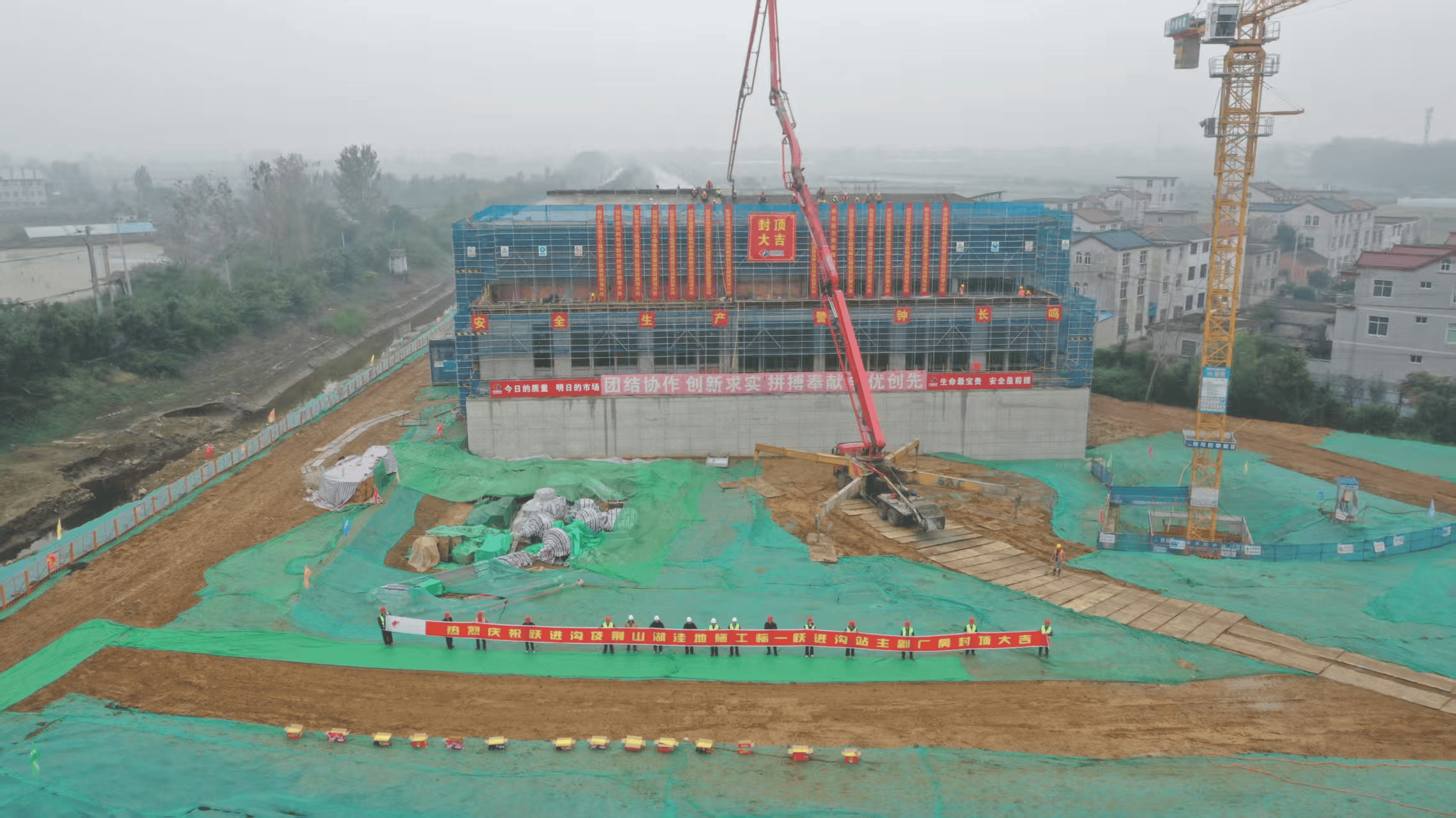 2025年10月26日,由建院集團(tuán)設(shè)計(jì)和監(jiān)理的安徽省沿淮行蓄洪區(qū)等其他洼地治理工程-躍進(jìn)溝及荊山湖洼地標(biāo)躍進(jìn)溝站完成封頂工作,標(biāo)志著沿淮洼地懷遠(yuǎn)段2024年10月開工的18座泵站全部封頂。