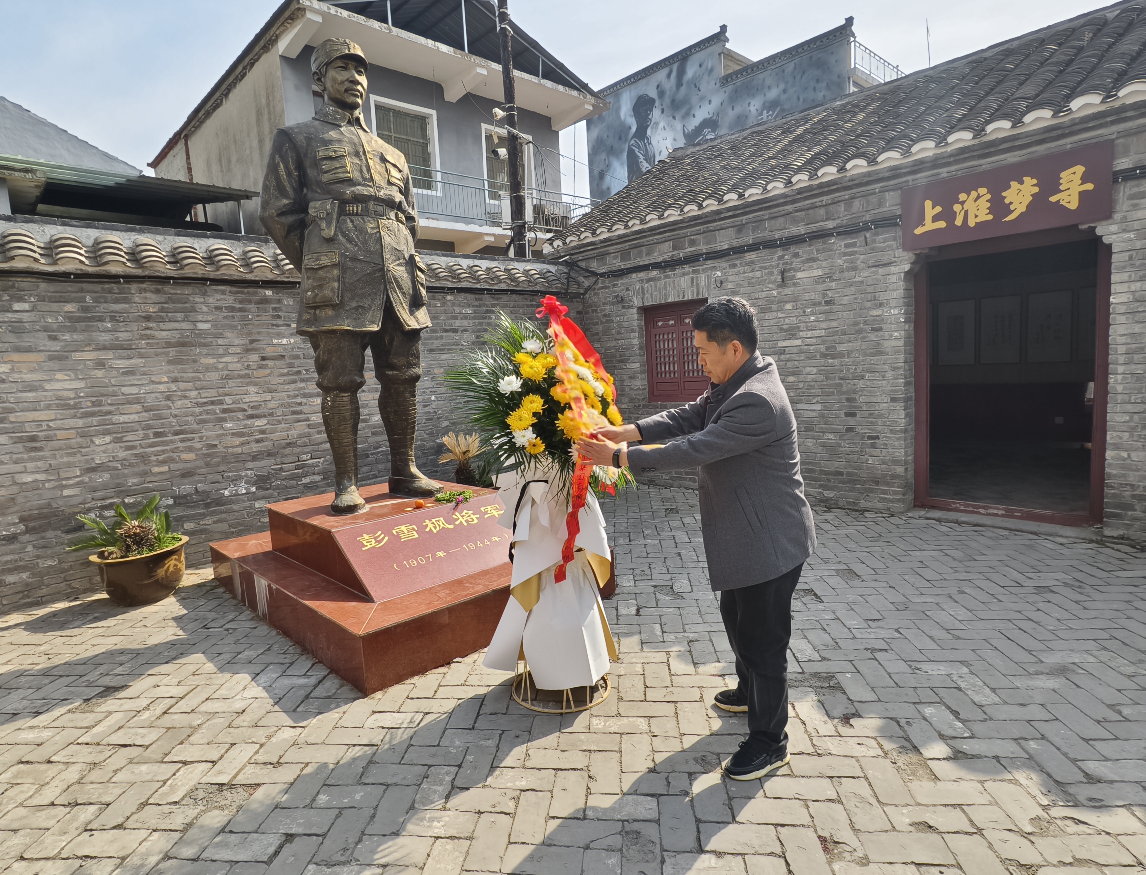 參觀結(jié)束后,全體黨員來到彭雪楓將軍銅像前肅立默哀。向革命烈士敬獻(xiàn)花籃,表達(dá)對(duì)革命先烈的崇高敬意。